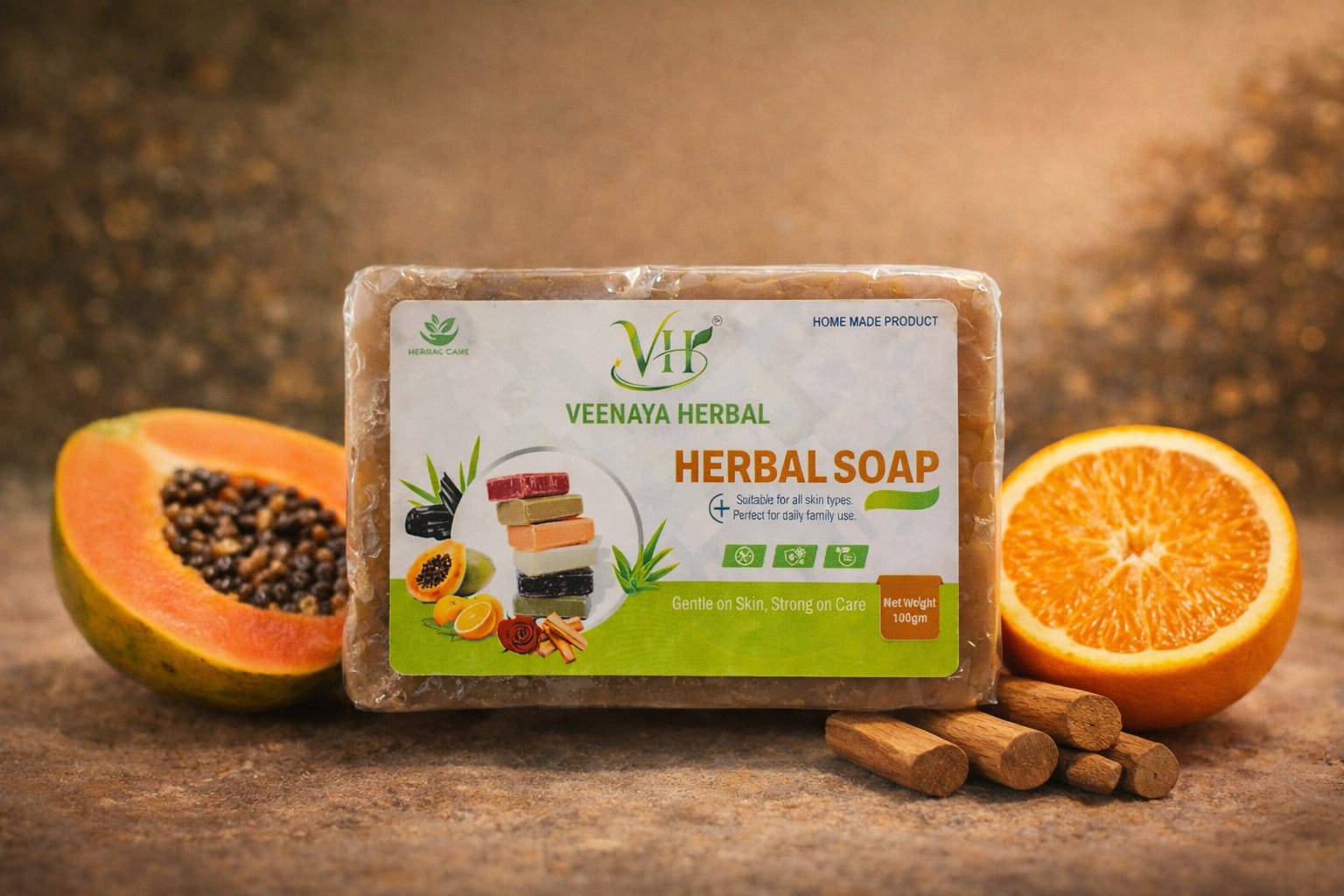Aloe Vera & Orange Peel Herbal Soap is a refreshing blend of natural aloe vera and vitamin-rich orange peel extracts that gently cleanse, hydrate, and revitalize the skin. It helps maintain soft, fresh, and naturally glowing skin with every wash.